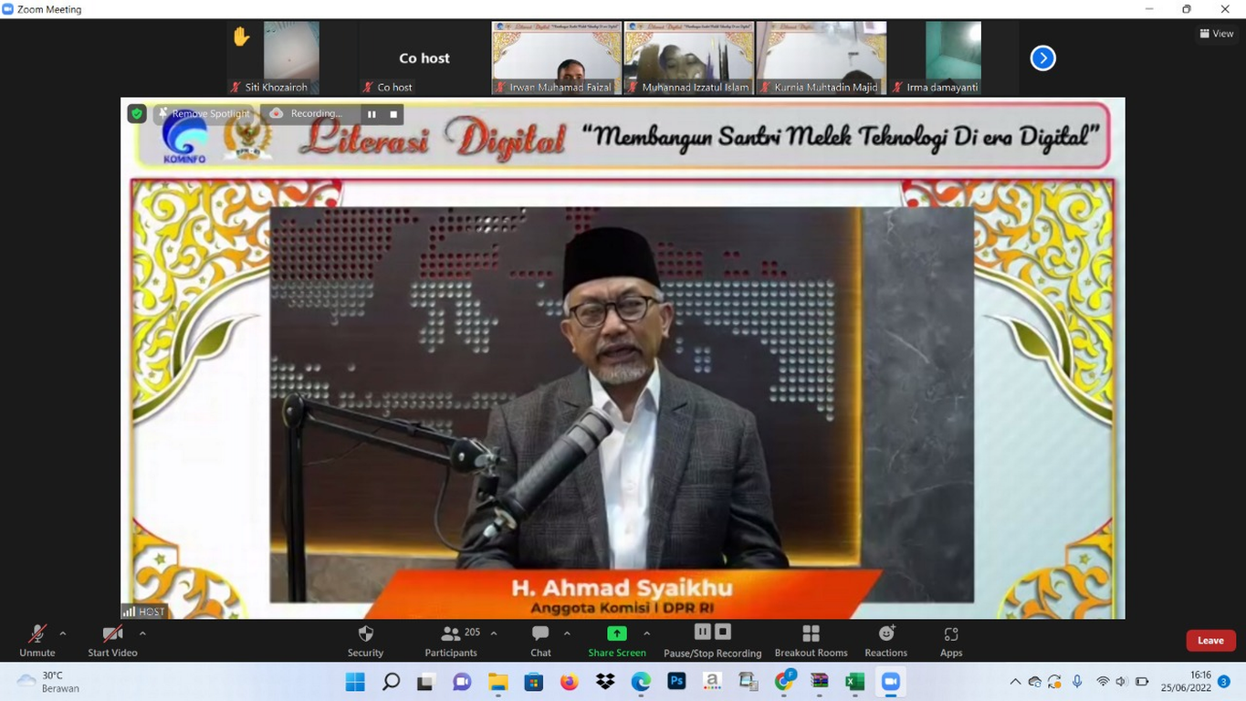 Hal itu disampaikan Anggota Komisi I DPR RI Ahmad Syaikhu dalam acara Webinar Literasi Digital bertemakan Membangun Santri Melek Teknologi di Era Digital, kerjasama Komisi I DPR RI dengan Kemenkominfo, Sabtu (25/6).